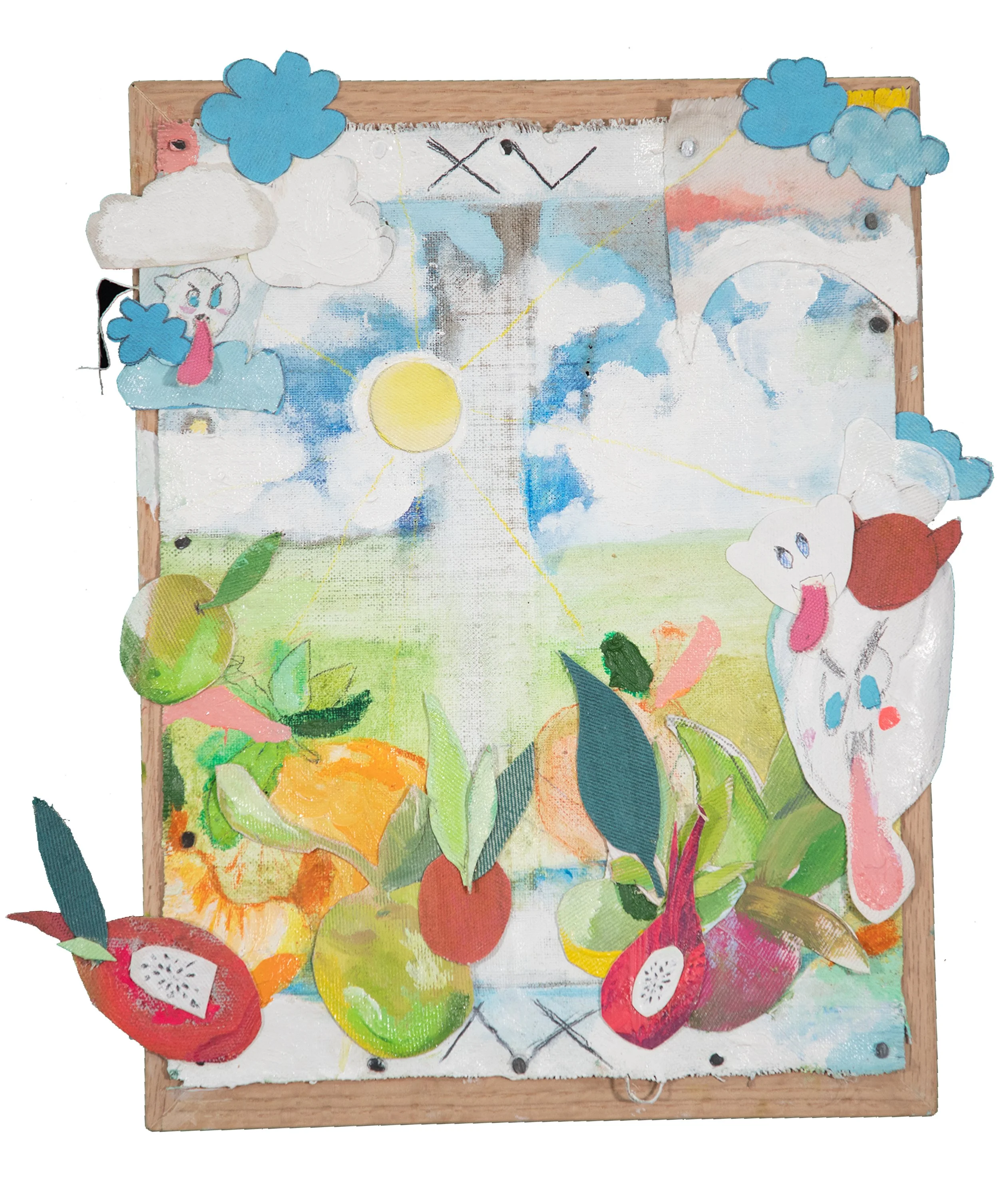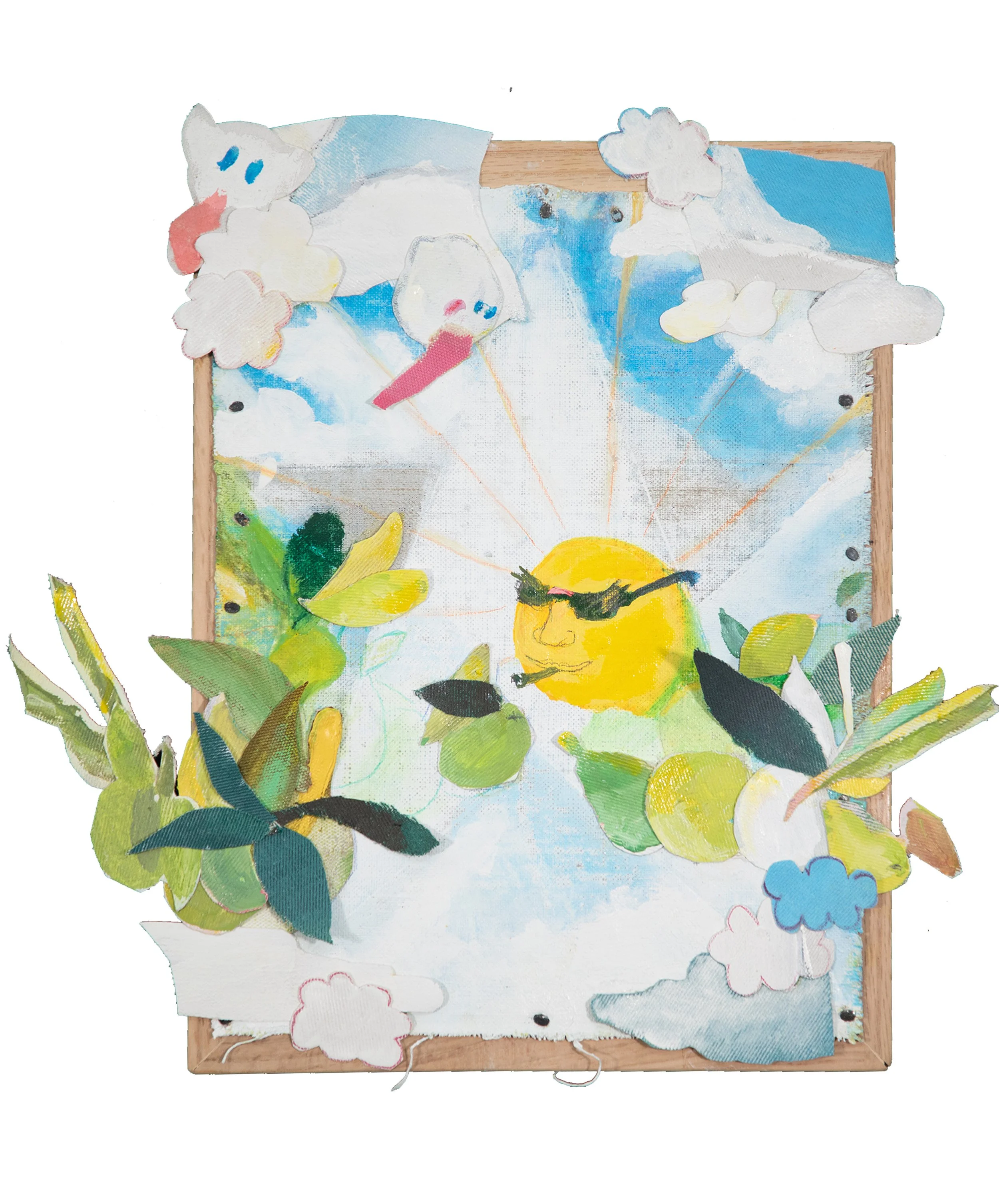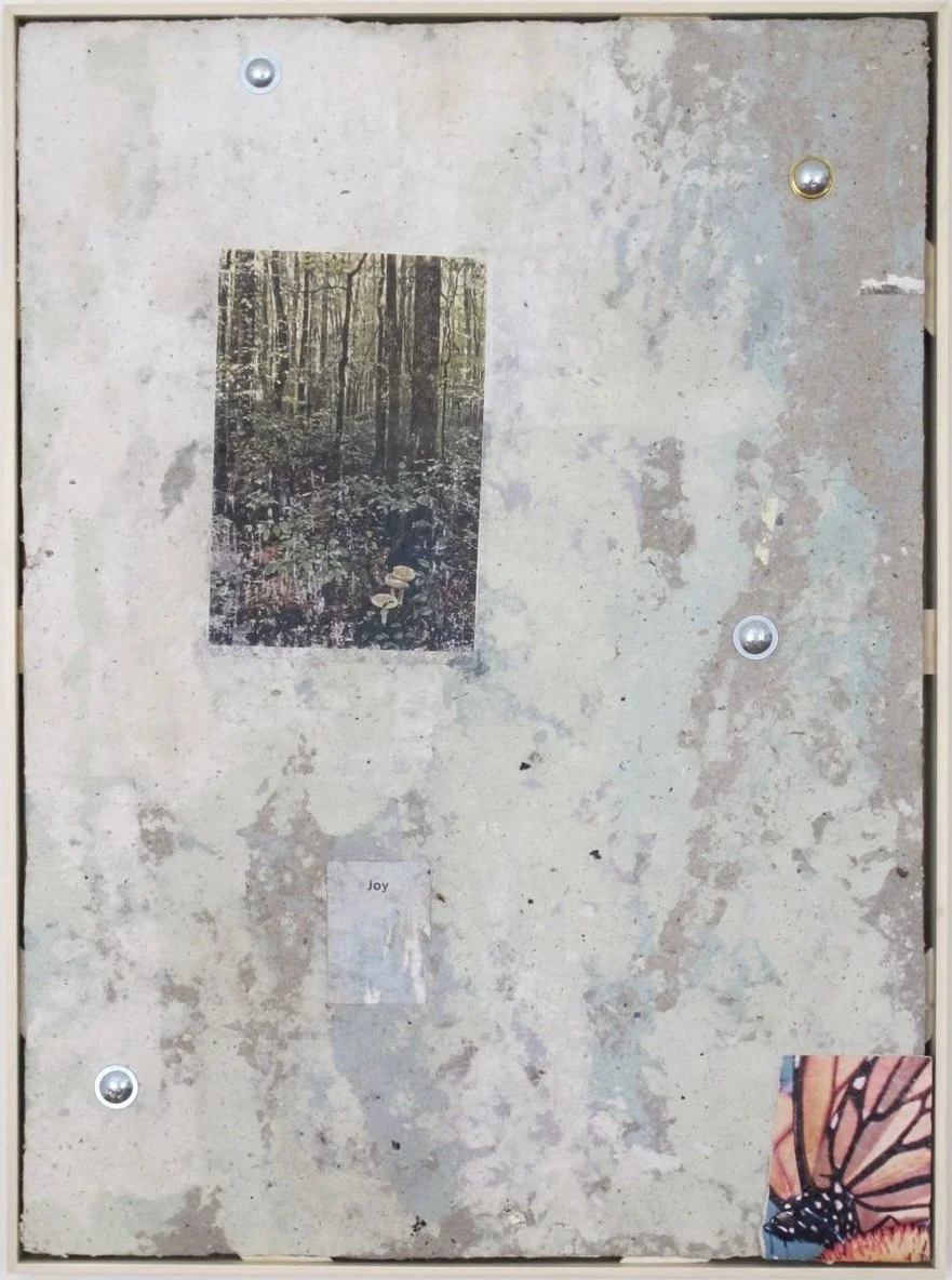 Seleccionamos Joy como uno de los ejemplos más sólidos de collage en esta edición. El proceso de Macie para crear el soporte a partir de pulpa de papel es, en sí mismo, una forma de collage: una manera verdaderamente distintiva de construir la superficie sobre la cual trabaja. En ciertos momentos, el papel parece imitar concreto o piedra, pero se trata de una ilusión. Al observarlo de cerca, las piezas resultan sorprendentemente ligeras y frágiles. En un momento marcado por la agitación generalizada, nos atrajo Joy por su optimismo y por su manera deliberada de imaginar el futuro”.