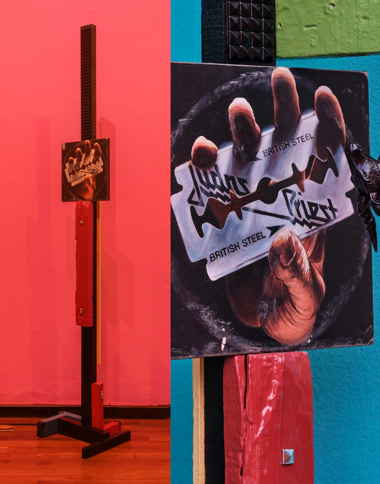 Marco A. Aviña, con una pintura visceral que nace del graffiti y de una educación plástica que no olvida su raíz de sus raíces. Franco Martín, con una práctica multidisciplinaria alimentada por el humor negro y la estética underground, desmantela narrativas históricas y comerciales desde un lugar incómodo pero profundamente lúcido. Por su parte, Macie se apropia del detrito del consumo como medio para señalar, con ironía y crudeza, la vacuidad del deseo capitalista. Juntos, sus trabajos configuran un paisaje que resiste la pulcritud superficial y propone una estética donde el hogar es un espacio disputado entre lo íntimo y lo social, lo belo y lo abrasivo.